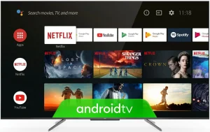 Dijagonala ekrana 55" (140 cm) Rezolucija Ultra HD 4K 3840 x 2160 Odnos stranica 16:9 Quad Core Processor Memorija 16 GB Smart TV da Android da Digitalni tjuner DVB-T2/C/S2 Analogni tjuner Video HDR 10+ Osvetljenje: 330 Nits Clear Motion Rate (CMR) 100 CMR kontrast: 5000:1 ( Static ) vreme odziva: 9,5 ms Dynamic Contrast On/Off Micro Dimming Yes, Signal processing in sub-area Wide Colour Gamut Yes Quantum Dot Technology Ugao gledanja (H° /V° ): 178° /178° veličina: 16:9/4:3/Cinerama/14:9zoom/16:9 zoom/16:9 zoom up modovi: Standard/Smart HDR/Sport/Movie/Dynamic Audio Snaga zvuka: 2 x 10 W 2.0 Channel Dolby Atmos DTS-HD modovi: Standard/Movie/Music/Voice/Game/Stadium/Dynamic Podržani formati video: AVI, DIV, MPEG-4, MPEG-H, MP4, VC-1, VP8, PP9 audio: MP3/AC3/AAC/AC4 fotografija: JPEG/PNG/BMP/HEIF Wi-Fi 802.11 ac/b/g/n Bluetooth LAN Priključci USB 2.0 x 2 RJ-45 Izlaz za slušalice HDMI x 3 AV in SPDIF izlaz za slušalice CI+ Smart funkcije Google Assistant Hands Free Voice Control Google Play Store YouTube Google Play Games Google Play Movies/TV Chromecast Built-in Works With Alexa Media Center Amazon Prime Freeview Plus Stan Netflix Glasovna kontrola Teletext EPG Subtitle Parental Control Energetska klasa A+ Potrošnja energije 126 kWh/god VESA standard 300 x 200 Dimenzije bez postolja 1228,6 x 703,9 x 74,5 mm Dimenzije sa postoljem 1228,6 x 765,5 x 300,2 mm Težina bez postolja 14,5 kg Težina sa postoljem 14,8 kg Boja tamno siva