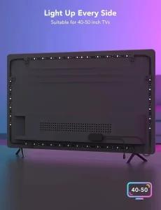 Dužina trake od 7,8 stopa (oko 2,4 metra) dovoljna je da obuhvati četiri strane televizora veličine 40–50 inča. Preporučuje se korišćenje priloženih kopči za kablove kako bi traka čvrsto prijanjala uz TV i izgledala uredno.