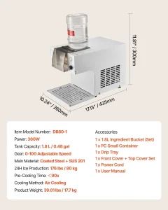 Ova mašina za pahuljasti led ima stabilan sistem hlađenja vazduhom koji predhlađuje za 90 sekundi i pravi led za samo 3 sekunde nakon predhlađenja, proizvodeći do 80 kg (176 lbs) dnevno. Pogodna je za vodu, mleko, sok, gazirane napitke ili kafu.