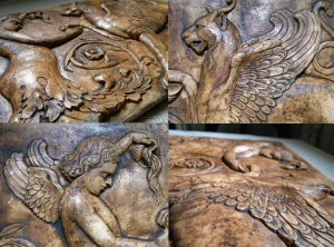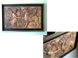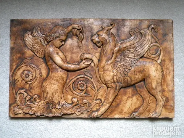 Reljef moze da bude ukras na fasadi, da se ugradi u nameštaj (na vrata komode) ili da se urami kao zidni ukras (slika 3. je uramljena opcija koja je data kao predlog i nije predmet prodaje)