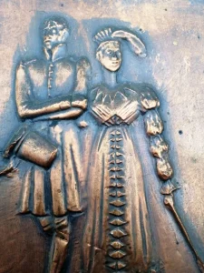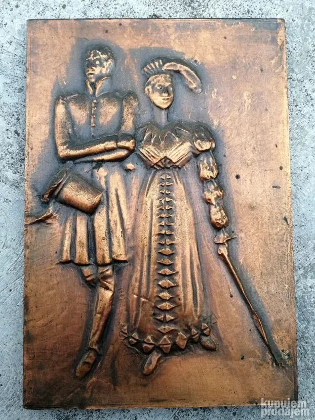 Reljef sa srednjvekovnom scenom muškarca i žene.