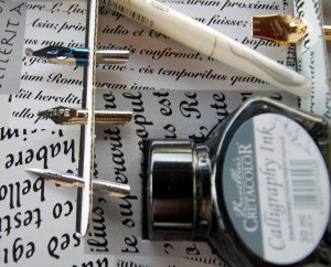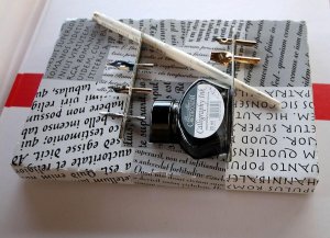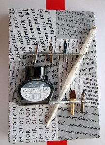 Made in Austrija. Kreativni kaligrafski set sa 5 pera i bočicom kaligrafskog tuša/ mastila. Pera su proizvedena u Engleskoj: