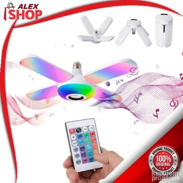 Bluetooth se može lako povezati sa mobilnim telefonom i puštati muziku. Pogodno za dnevnu sobu, spavaću sobu, dečju sobu, kafić itd. Glasnoća muzike, takodje, jačina i boja svetla je podesiva, daljinski upravljač može istovremeno kontrolisati više sijalica.