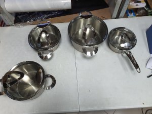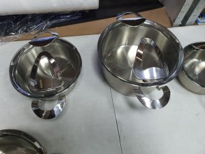 - Set je KORISCEN, jedna rucka sa strane se odlemila. Pogledajte slike, sve je lepo prikazano. Ima 4 serpi sa poklopcem.