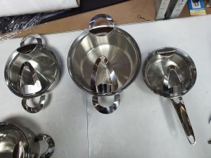 Funkcija slaganja: Zahvaljujući svom konusnom obliku, lonci za kuvanje sa funkcijom slaganja se uklapaju zajedno sa istim prečnikom i na taj način se mogu skladištiti na način koji štedi prostor.