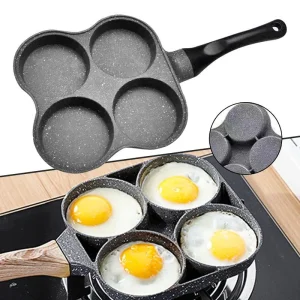 Tiganj sa 4 odeljka ovaj premium tiganj kombinuje vrhunski materijal, praktičan dizajn i elegantan izgled kako biste maksimalno olakšali pripremu obroka. Tiganj je izrađen od aluminijuma i nelepljiv je. Ručka omogućava udobno držanje, a tiganj je i izdržljiv i otporan na habanje. Tiganj poseduje inteligentnu kontrolu temperature i posebno oblikovano dno koje omogućava ravnomernu distribuciju toplote. Dno nije lepljivo, što ga čini praktičnim za sve vrste šporeta – od indukcijskih ploča preko plinskih šporeta do električnih keramičkih ploča.