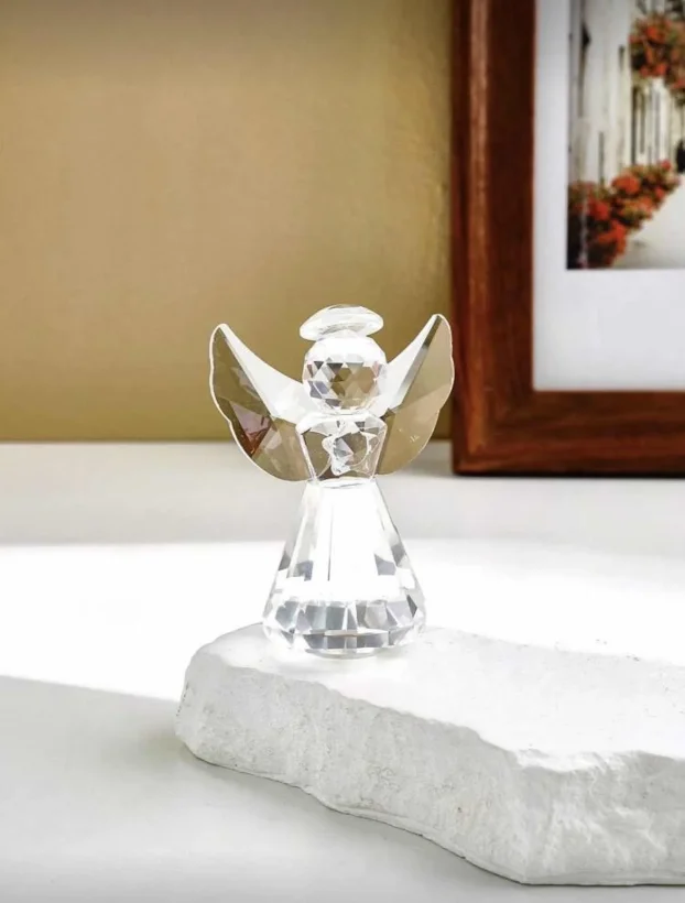 Unesite dašak magije u svoj prostor s ovim prekrasnim staklenim ukrasom u obliku anđela, ukrašenim kristalnim prismama. I prelepog leptira. Ova dekoracija ne samo da će ulepšati vaša okruženja, već će i stvarati divne refleksije svetlosti u svakom kutku vaše kuće. Izrađeno od visokokvalitetnog stakla.