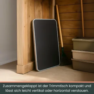 Štedljiv na prostoru – sklopive noge omogućavaju lako odlaganje i transport. Savršen za mobilne frizere za pse ili vlasnike koji žele fleksibilan sto za šišanje.