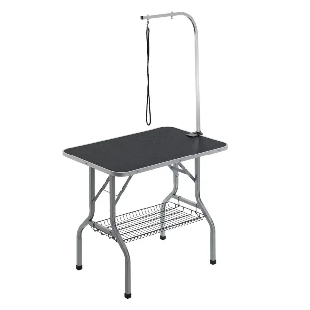 Sto ima površinu dimenzija 91,5 × 61,0 cm, visinu radne ploče približno 80 cm, dok je visina ramena za pridržavanje približno 79,5 cm. Nosivost stola iznosi 149,7 kg. Konstrukcija je od čelika tipa Q235A sa površinskom zaštitom, radna ploča je hidro-, neklizajuća i otporna na toplotu. U kompletu dolazi ruka za pridržavanje (ram) sa stegačem, slobodan držač za zadnjicu (haunch holder) i traka-petlja za vezivanje životinje. Sto je sklopiv, sa gumiranim stopama koje sprečavaju klizanje i ojačanim ramom protiv savijanja. Pogodan je za srednje i manje pse u salonima ili kućnoj upotrebi.