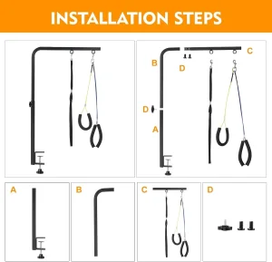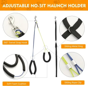 Držač protiv sedenja i omča za šišanje: Ruka za šišanje pasa sadrži dva držača protiv sedenja i omču za šišanje koja drži ljubimce na mestu i sprečava da sednu ili legnu tokom kupanja, sušenja, četkanja, šišanja, trimovanja ili sečenja noktiju.