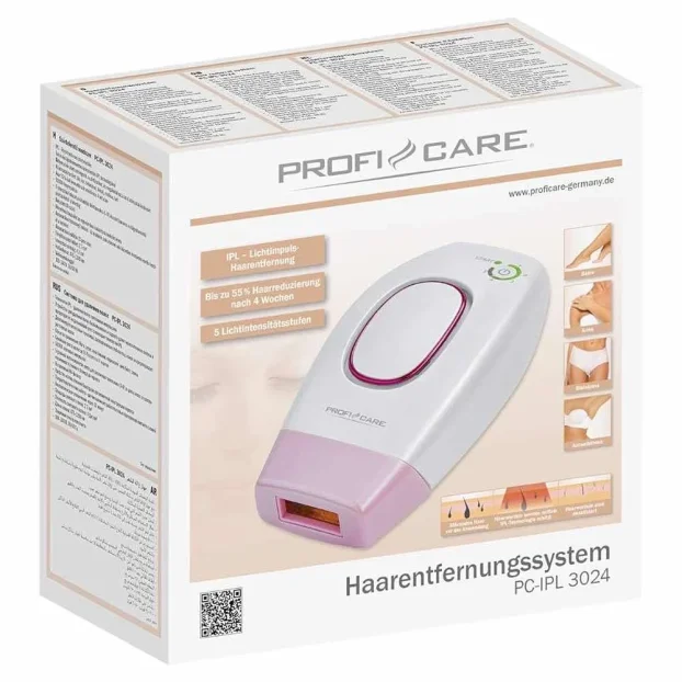 Glatka koža: u samo nekoliko koraka do baršunasto meke kože. Uznemirujuće dlačice na nogama, rukama, pazuhu, leđima, grudima i bikini zoni uskoro će biti stvar prošlosti. PC-IPL 3024 od ProfiCare-a je idealan za sve sa osetljivom kožom i kojima alternativne metode uklanjanja dlačica poput brijanja ili depilacije voskom ne dolaze u obzir.