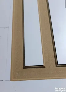- Šara 3 (slika 3): Šara sa kombinacijom ravnog glodala 20mm i ravnog glodala 4mm. Dubina šare 5mm. Širina margine 60mm. Okvirna cena: 1200 din/kom. (4000din/m2 fronta).