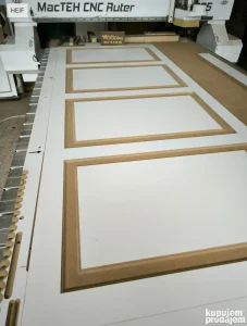 CNC izrada šara na frontovima, CNC obrada, krivolinijsko i pravolinijsko sečenje. Radna površina 250x130cm. 5,5kW.