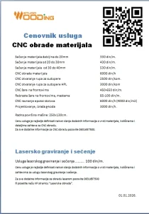 Cenovnik CNC usluga Wooding studio, Novi Sad.