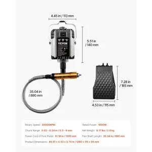 Flex-osovina (flex shaft) mašina snage 1000 W sa brzinom do 30 000 o/min, namenjena za precizno brušenje, poliranje i graviranje malih delova. U kompletu dolazi 31 dodatak i pedala za kontrolu brzine. Pogodna za radionice, hobi rad, izradu nakita i obradu sitnih materijala.